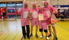 Wir sind die "Ältern" im legendären rosa Hasenoufit, also die "älteren Hasen"